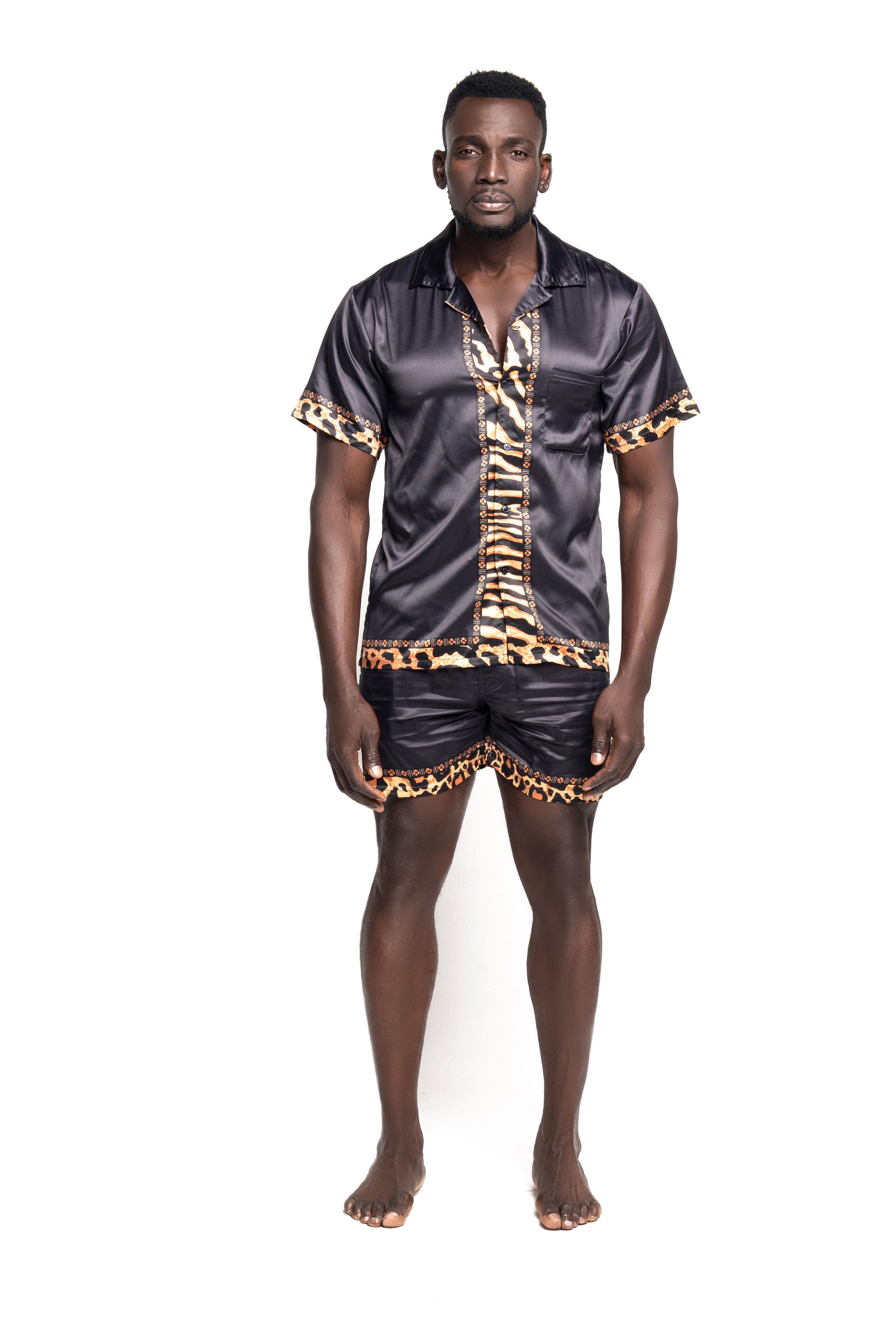 Model wearing size M top and bottom; Height 6'2", Chest 43', Waist 33', Shoulder 20'